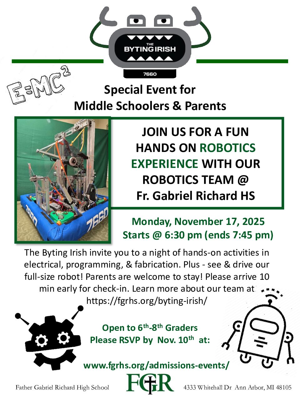 Open to all 6th-8th Graders at FGR High School! Please RSVP by Nov. 10th