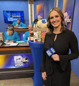 A typical day for me at WISN starts at 2:00 in the morning! I have to be at work by 3:30 a.m. so I get up in the middle of the night to start my day. There’s no professional stylist or hair and makeup team, so it’s up to me to look TV ready. Once at work, I start proofing scripts for our newscasts which begin at 4:30 am. From 4:30 – 7:00 am, I’m anchoring our morning news. Milwaukee is a very active news market, so we typically have breaking news overnight (anything from shootings, to fires, to car crashes) or a big local story to preview for the day, along with the other stories locally and nationally that people may have missed from the day before. This is where my ‘normal’ day ends. After the newscasts, my assignment depends on what’s happening in the moment, which makes my day interesting and never boring. I often go out and report in the community from 7:00 am until about noon. If there’s breaking news, I’m arriving on scene without much information and trying to gather details to report on air and online. Other times it’s a pre-planned event where I’m interviewing subjects on a topic or asking questions at a press conference. Then I write my script, send soundbites back to the station so it can air on TV, and prepare for a live report at 11:00 am. By the way, while a script is prepared, there’s no teleprompter in the field. After my live shot, my photographer and I head back to the station to prepare a ‘package’ (90 second recorded story) for the evening newscasts on my story I did at 11:00. Throughout the work day I’m also making social media posts and writing web articles for the website.
